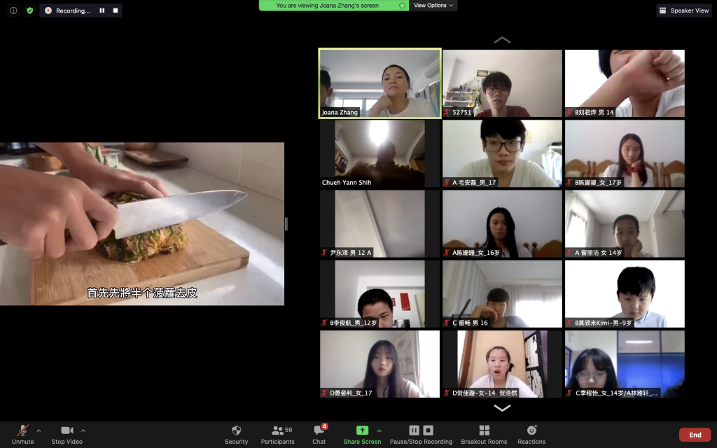 參考視頻播放完以後,Sofia老師向大家提問,比如你第一次做什麼菜?在燒菜的途中最困難的事情是什麼?而青年們一個個的準確又回答了Sofia老師的提問。