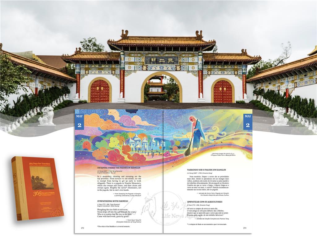 慶祝葡英雙語版《獻給旅行者365日-中華文化佛教寶典》的上市發行,葡萄牙佛光山於10月17日透過視訊,舉行新書發表會,由葡萄牙佛光山監寺覺彥法師擔任主持人,共同與四位與談人-Farol出版社João Tibério主編、《獻給旅行者365日》葡語翻譯Ruben Louzada、總校對João Magalhães、及佛光青年代表Jorge Jin Zhou進行一場「書與心靈」的生命對話,娓娓道出原創作者星雲大師以及《獻給旅行者365日》理念傳遞的感性、拾起生活行動力的知性、以及全球共讀的影響力;新書發表會全程以英文、葡萄牙語進行,計有三十名來自葡萄牙里斯本、阿馬多拉、基馬拉斯市的學界代表、宗教人士、以及葡萄牙佛光人與會參加。