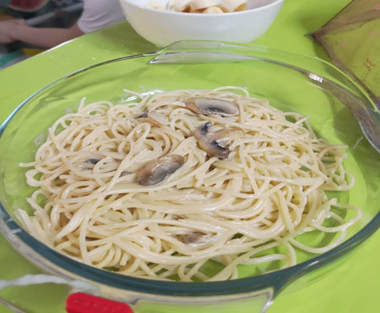 今天是我期待已久的烹饪课,我们所学的有三道菜,主菜是奶油蘑菇意大利面,副菜是水果沙拉再加上甜点,非常的好吃,想到这些菜的厨师真的很棒。主菜是我非常喜欢的食物,我从小到大都没有讨厌过,但是我每次吃的时候都是有肉的,这次尝试了不使用肉,一开始我以为是不会有味道的,但是吃了之后我发现我错了,不用肉的比用肉的还更加好吃更有口感。我很期待下一节课的菜,因为每次都能给我带来惊喜。