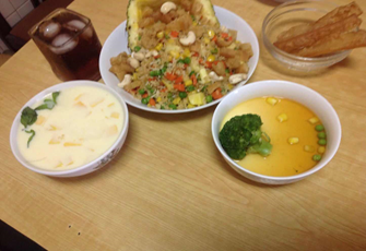 今天是我们的第四节烹饪课,也是最后一节烹饪课。老师教了我们《菠萝炒饭》,《鸡蛋羹》和《芒果西米露》。这三样菜都非常的美味!特别是菠萝炒饭,一般人一般都喜欢吃芒果西米露但是我不喜欢因为它太甜了,而鸡蛋羹我做过好多遍都是这个味也没有什么不同,这节课对于我来说就学会了两样菜。虽然菠萝炒饭和蛋炒饭没什么不同的炒法…就是需要注意一下菠萝要最后放。