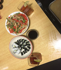 今天迎来了第二节烹饪课!老师这次教了我们做素食乌冬面以及寿司,正好我正愁着没什么菜可以做真好,又学会新的菜品!