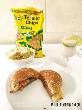 今天是8月6号,是我们的第一堂烹饪课。我们今天学习到了3样不一样的,一个主食(汉堡),一个小吃(墨西哥酱牛油果拌西红柿)和一个饮料(无酒精mojito)。一开始我就在想烹饪课会以什么样的形式和教学方式呈现出来呢,是我们大家一起同步的在现场去做吗,还是教我们做法然后之后我们自己做呢?然而呢,是我想到的第二种。今天我们也学到了很多关于吃素食的好处。我其实已经很久都没吃到过汉堡了,主要还是因为今年年初突如其来的疫情。我们下课后我就马上开始做了,其实过程在我看来其实是不难的,因为我爸是一个厨师,在这方面也有很多的经验,他也教过我怎么去做饭啊之类的,所以说我今天基本上一个人搞定了。汉堡呢我爸妈都说很好吃,我也觉得挺好吃的,饮料也是挺好喝的,酱呢也是很nice,搭配墨西哥饼也是很biu的否。