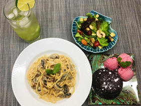 这节烹饪课想往常的一样先播放了事先做好的教学视频还有现场直播教我们怎么做还有需要注意的地方….哦不!在这之前Frank老师还问了我们前几堂课后我们在家做是否遇到困难….叫到我和妹妹了….非常紧张也非常开心,因为在那么多人里面怎么偏偏叫到了我,可能是因为之前的照片被他们记住了吧,看完现场直播后法师也像以往的课一样再讲了一遍步骤,让我们不要忘记,我有点失望因为我特别期待现在直播做巧克力、熔岩蛋糕,可是因为太麻烦了所以没有做,其他的都很喜欢,非常喜欢烹饪课,尽情期待我的作品吧!