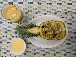 今天老师教我们烧菠萝炒饭,鸡蛋羹和芒果西米露从一个视频,然后老师用直播有教了一次,最后法师问了我们一些问题。感谢每位老师这么辛苦教了我们这么多的吃的!谢谢老师们!