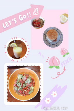6/8: 今天我们上了烹饪课,我还挺喜欢的。我们学了怎么做素食汉堡还有墨西哥牛油果和无酒精mogito。老师把过程都讲了一遍也提到了吃素食可以保护环境也可以身体健康。做的时候很有趣,很好玩也很好吃。