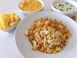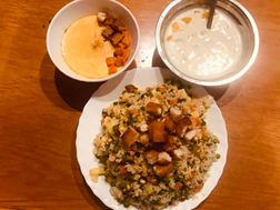 月我们上了4节烹饪课,学会了13道美味佳肴的制作,我们也是挺了不起的,至少以后要自己做饭也不会饿死自己,甚至还可以做饭给朋友吃,想想就很厉害!今天要学的主菜《菠萝炒饭》,配菜《鸡蛋羹》和甜品《芒果西米露》都是我们平常就能吃到的食物。尤其是这个炒饭,大概是我这个厨房小白做得最多的或者说是做的最好的(当然也是最简单的)一道菜了,基本上是不需要什么技术含量,把饭放锅里一炒,再加两菜,就可以出锅了,很是简单方便!今天的这道《菠萝炒饭》是为我提升炒饭技术的,好吃又精致,希望待会儿的成品不会让我太失望。然后就是《鸡蛋羹》,也是比较常吃的,早上妈妈都会做一个鸡蛋羹给我补充蛋白质,耳熟目染相信也会是简单的!最后一个《芒果西米露》,這是我去甜品店必点的一道甜品,真的好吃可口,终于有机会可以自己尝试去做啦!期待待会儿的成品啦!