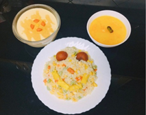 27/8:今天老师教我们如何做菠萝炒饭,鸡蛋羹和西米露。在看完视频之后我对做饭有了全新的认识。做饭不只是单一的放入传统食物,也可以用抽象的方式去做,打破格局自我创新做出只属于自己的菜!非常感谢老师,也非常期待明年的烹饪课!